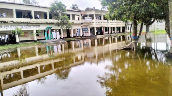 পুরো মাদরাসা মাঠ জুড়ে থইথই পানি। সামান্য বৃষ্টি হলেই সৃষ্টি হয় জলাবদ্ধতা। এতে ডেঙ্গু আতঙ্ক ও চরম দুর্ভোগ পোহাতে হয় শিক্ষক, শিক্ষার্থী এবং মাদরাসায় আগত অভিভাবকদের। এমন চিত্র দেখা গেছে
