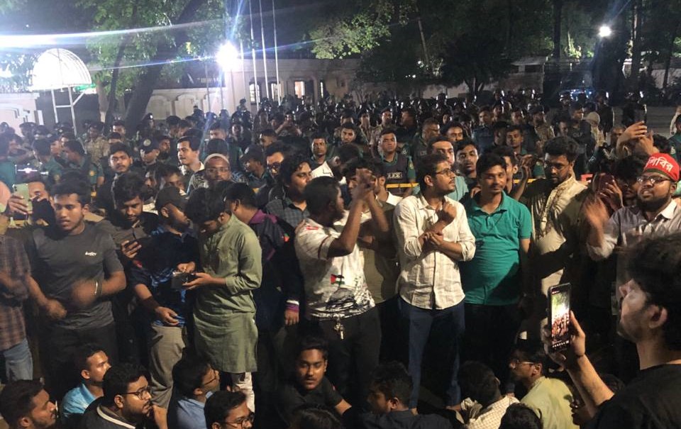 গণহত্যাকারী সংগঠন আওয়ামী লীগ নিষিদ্ধের দাবিতে প্রধান উপদেষ্ঠার বাসবভনের সামনে অবস্থান কর্মসূচি পালন করছে একাধিক ছাত্র সংগঠন। এই কর্মসূচিতে অংশগ্রহণকারী সংগঠনগুলোর মধ্যে রয়েছে ছাত্রশিবির, এনসিপি, জুলাই ঐক্য, আপ বাংলাদেশ, ইনকিলাব
